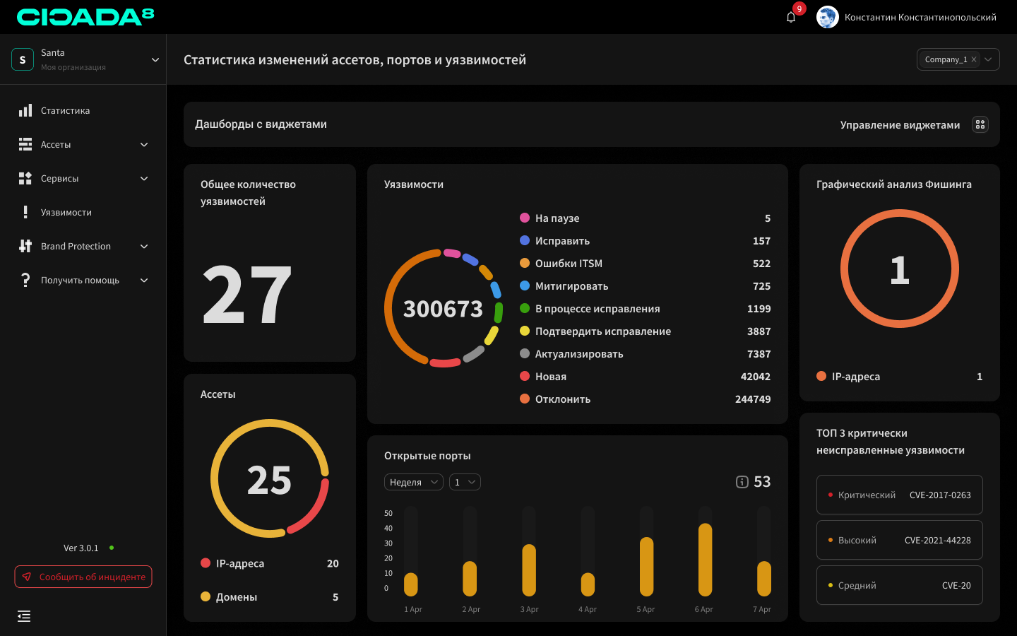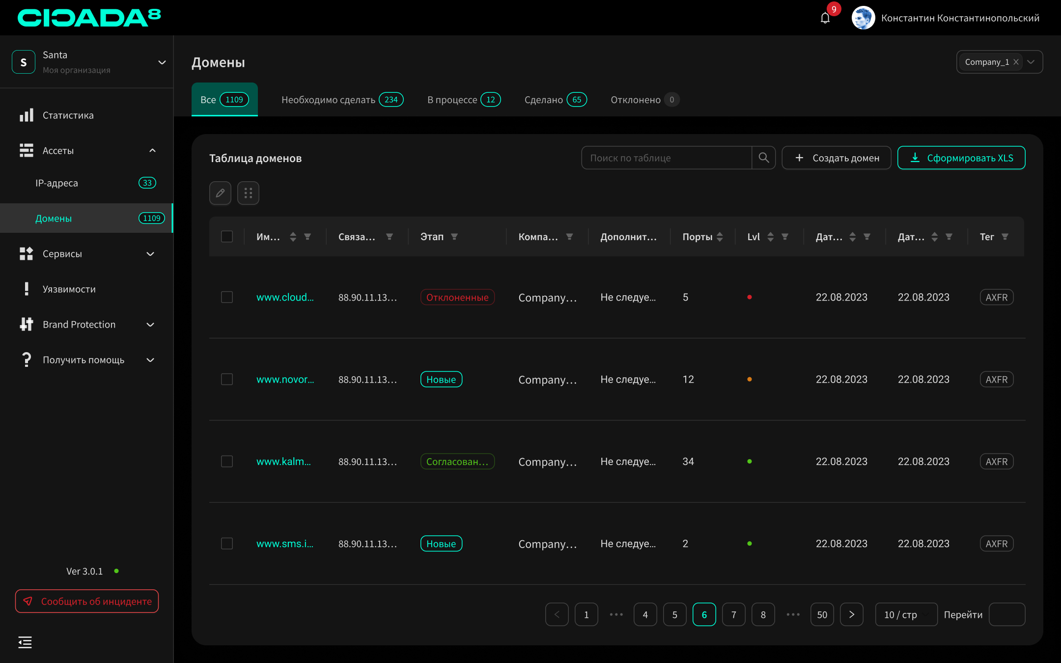Самостоятельно управляйте процессом анализа внешнего периметра компании и отслеживайте изменения периметра в динамике