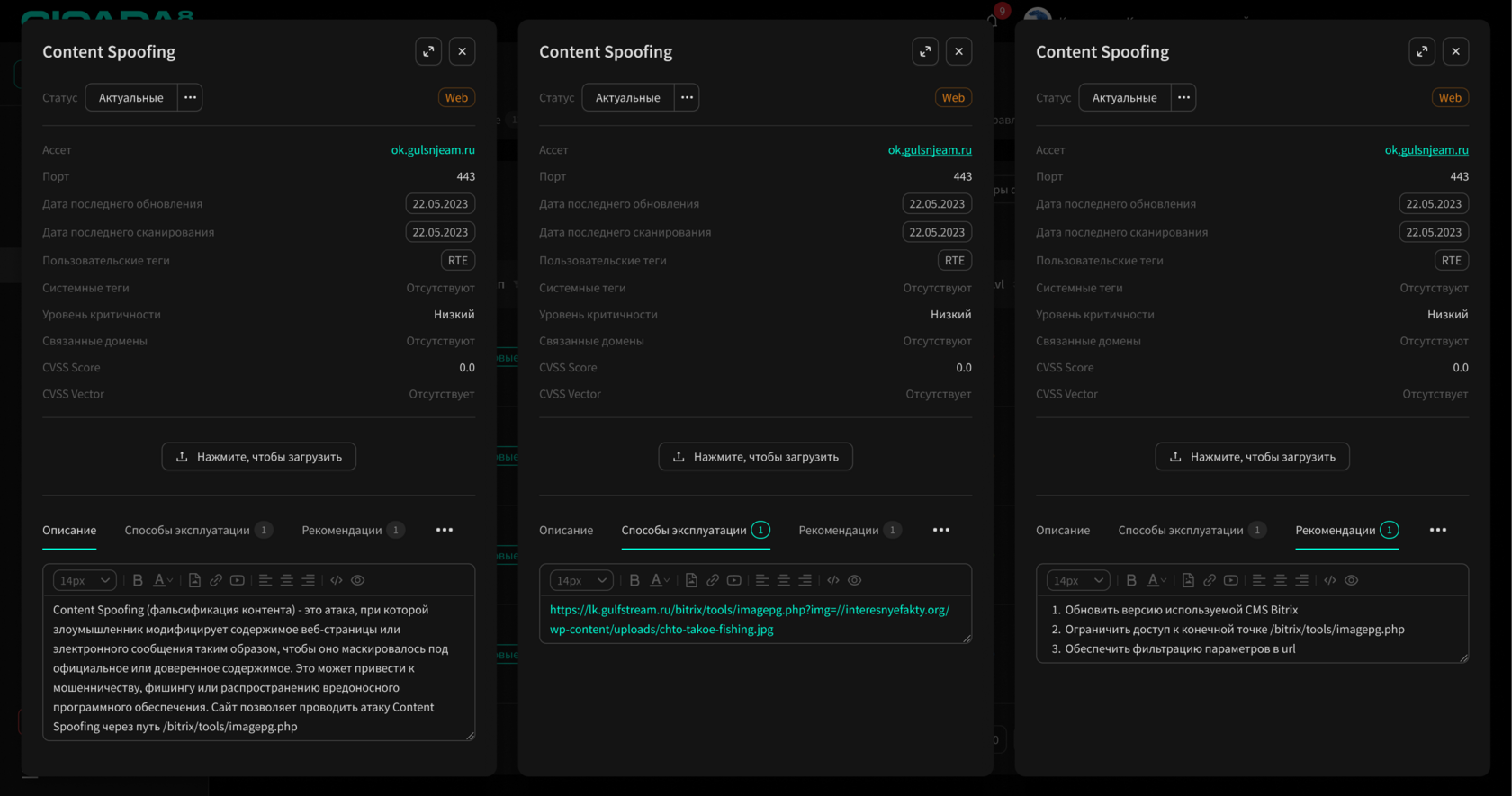 оперативное выявление недостатков и формирование карточек уязвимостей